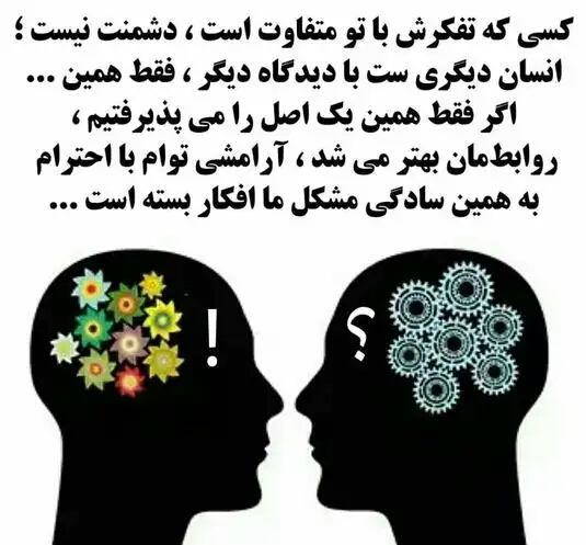 وقتی دو نفر با این شرایط فیزیکی و مغزی مشترک متفاوت فکر می کردند چرا اصرار داریم همه مثل ما رفتار کنند یا سلیقه شان مثل ما باشد؟