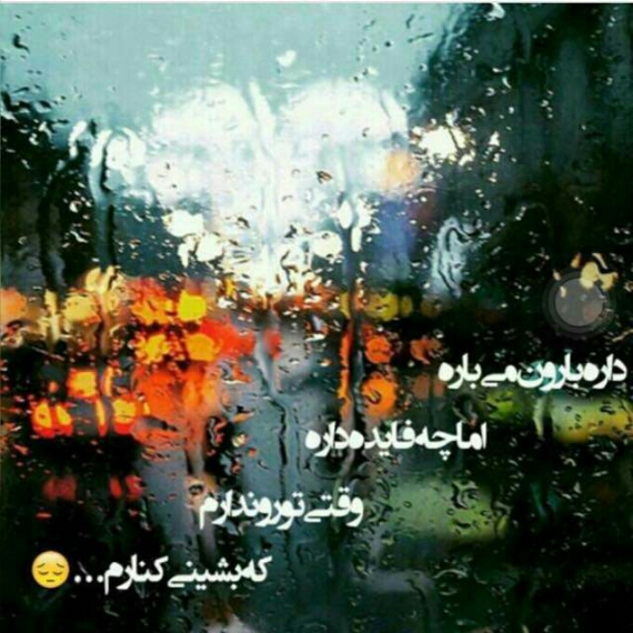 *♥♥♥♥*♥♥♥♥* داره بارون میباره😍 اما چه فایده😩 وقتی توروندارم😢 که بشینی کنارم😥 چشمامو باز میبندم😔 به گریه هام میخندم☺ توروصدا میزنم 😭 شاید بیای دیدنم 😭 یک عکس یادگاری که خودتم نداری😔 شده رفیق شبهام😭 میگیرمش روبه روم😔 وقتی که خیلی تنهاام😖 *♥♥♥♥*♥♥♥♥*