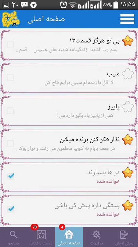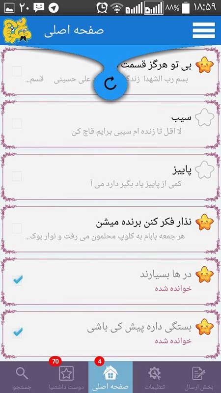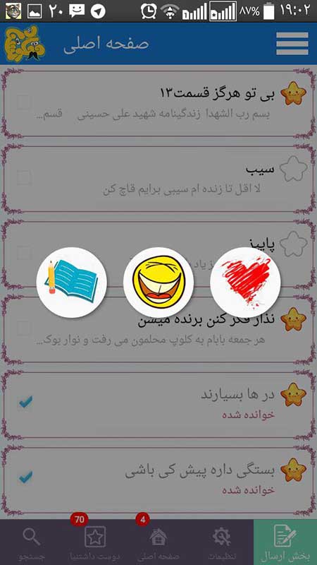 ارسال جوک به جوکدونی و ارسال پیام به بخش عاشقونه و ارسال پست رو اوردیم داخل برنامه که راحت و سریع و سره حال باشه براتون
