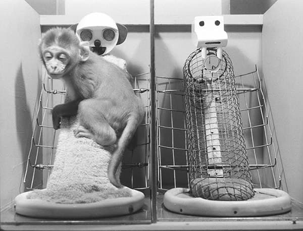 هری هارلو روانشناس در آزمایش هایی معروف میمون های نوزاد را کمی بعد از تولد از مادرانشان جدا و در قفس هایی کوچک محصور کرد