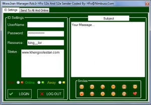 قسمت آخر که ایدیتون رو با سرور وارد میکنید : id@nimbuzz.com
