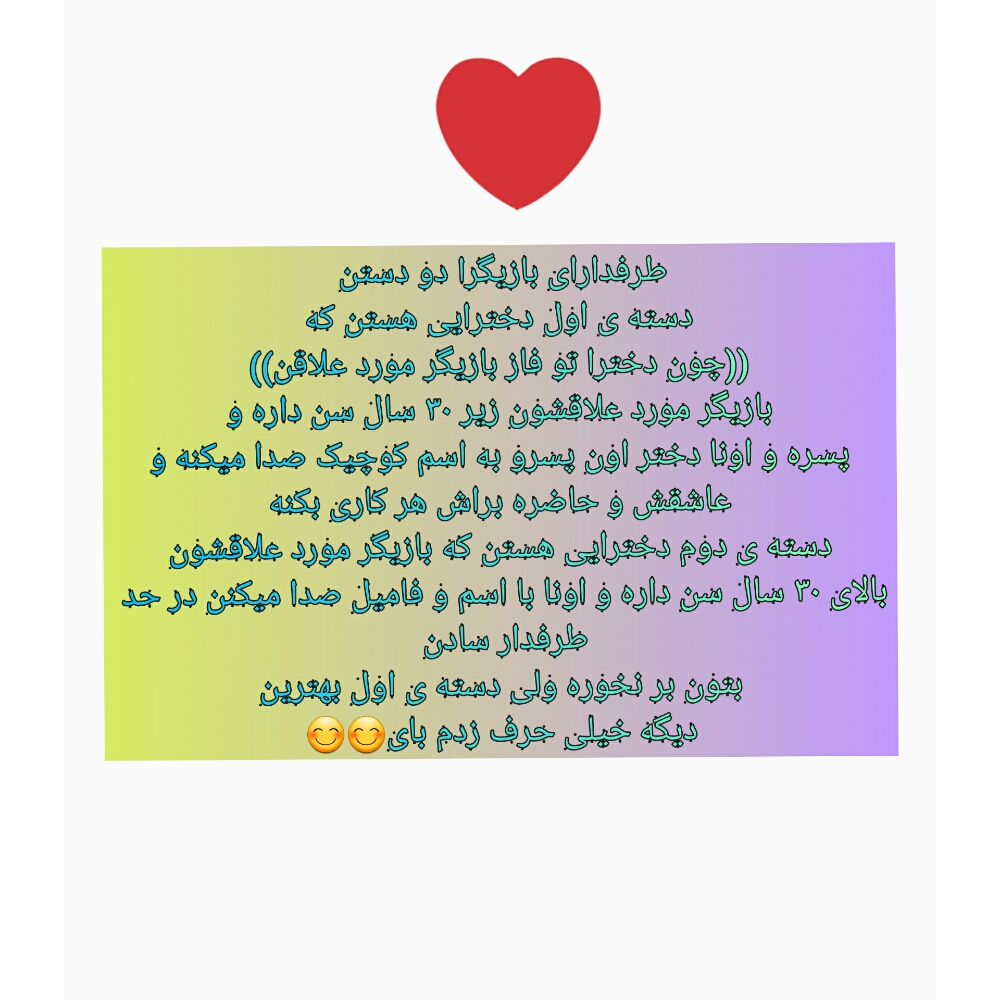 اینو بگم من اینارو راجب خودم نگفتم که مظلوم نمایی کنم فقط خواستم بگم هر عشقی هم عشق نیست و قرار نیس دوطرف به هم برسن