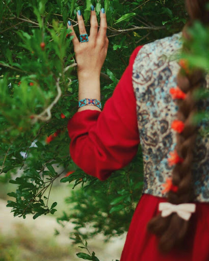 مثلا وقتی زیر درخت پر شکوفهای نشستی من انقدر درخت را تکان بدهم که باران شکوفه ببارد بر سرت و غر نزنی که موها و لباسم کثیف شد