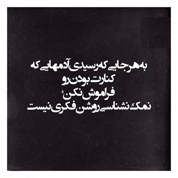 زندگی مثل بازی شطرنج میمونه اگه بلد نباشی همه میخوان یادت بدن وقتی هم که یاد گرفتی همه میخوان شکستت بدن ♥ * ♥ * ♥ * ♥ * ♥ * ♥ همه ادم ها با هم برابرند اما پولدارها محترم ترند همه آدم ها با هم برابرند اما بچه ها واجبترند همه ادم ها برابرند اما خانوم ها مقدم ترند همه آدمها برابرند اما سیاه ها بدبخت ترند و سفید ها برترند در کل همه ادم ها برابرند ، اما بعضی ها برابر ترند ♥ * ♥ * ♥ * ♥ * ♥ * ♥ اینگونه زندگی کن شاد اما دلسوز ساده اما زیبا مهربان اما جدی سبز اما بی ریا و عاشق اما عاقل ♥ * ♥ * ♥ * ♥ * ♥ * ♥ در دنیا همه چیز دوست داشتنی است اما برای دنیا تلاش نکن که مقصد خاک است ♥ * ♥ * ♥ * ♥ * ♥ * ♥ ما ادما همیشه صداهای بلند میشنویم پرنگ ها رو میبینیم و کارهای سخت دوست داریم غافل از اینکه خوب ها اسون میان بیرنگ میمونن و بیصدا میرن ♥ * ♥ * ♥ * ♥ * ♥ * ♥ صبر کردن دردناک است و فراموش کردن دردناکتر ولی از این دو دردناکتر اینست که ندانی باید صبر کنی یا فراموش ♥ * ♥ * ♥ * ♥ * ♥ * ♥ عشقی که تنها با یک نگاه اغاز میشود با شناخت ، سست و ست تر میشود ولی عشقی که با شناخت اغاز میشود با هر نگاه عمیق و عمیق تر میشود