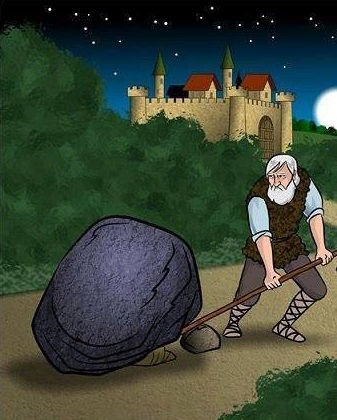 در زمان های گذشته، یک پادشاه تخته سنگی را در وسط جاده قرار داد و برای این که عکس العمل مردم را ببیند خودش را در آن جا مخفی کرد.