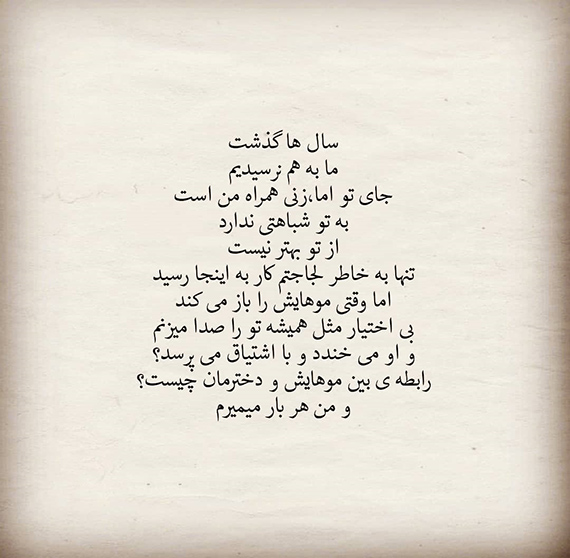 گفت میرم چون دوست ندارم یه روزی اسم مغازه هم اسم تو باشه یا یه آهنگ گوش میدم یا دستمو کسی میبوسه یاد تو بیفتم و اشک تو چشمام جمع شه و بگم چیز خاصی نیست