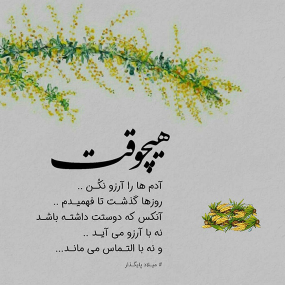 *@@*******@@* فدای سرت اگه دنیا باهات کنار نمیاد اگه کسی حرفتو نمیفهمه اگه زندگی با اتاق خلوتت درگیره فدای سرت اگه هیچ چیز اون جور که می خوای نمیشه اگه دلت پره و دستت خالی اگه روزا حسرت میشی و شبا آرزو فدای سرت اگه یک دل نه صد دل عاشق اونی شدی که دلتو شکست اگه ساز زندگیت کوک نیست و ملودی روزگار از دستت در رفته فدای سرت اگه خوب آوردی و دیگران بدش کردن اگه آشنایان ، این روزها باهات غریبه شدن اگه ندانسته به قضاوتت نشستن فدای سرت اگه رفت و پشت سرشم نگاه نکرد دنیای ما چیز زیادی نیست که بخوای با حسرت تباهش کنی زندگی کن دوست من برای کسی مهم نیست که تو شاد باشی یا غمگین برقص و دنیای خودتو باب دلت نقاشی کن گور پدر همه ی اونایی که قلم به دست میخوان احساستو خط خطی کنن شاد باش و با دیگران تقسیمش کن ،حتی اگر چیزی برای شادی نداری نگو دیگه کار از کار گذشته این تو هستی که می گذری از آرزوهات،خواسته هات ،شادی هات ،حتی گاهی از خودت هرچی که هست و نیست حتی این احساس حقیر من فـــــــدای سرت زندگی کن و سخت نگیر همــــــین -----------------**--
