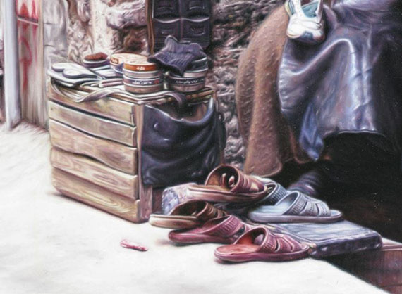 حمال که دوباره به سختی بارش را بر دوش میگذارد،
