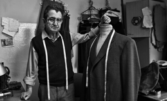 مرد خیاط ، لباسی قدیمی را در مغازه اش آویزان کرده بود