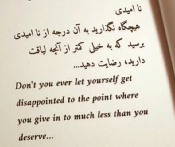 هیچگاه نگذارید به آن درجه از نا امیدی برسید که به خیلی کمتر از آنچه لیاقت دارید، رضایت دهید...