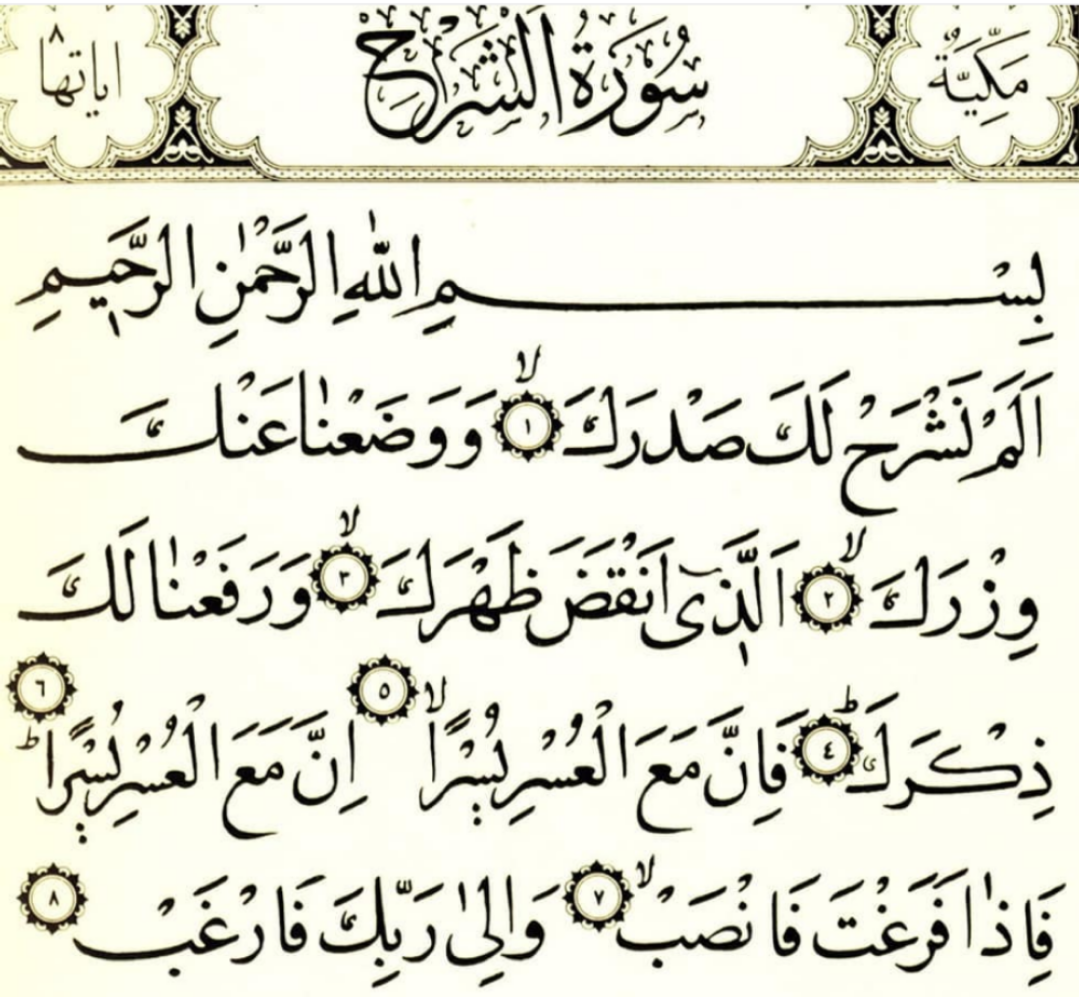 انَّ مَعَ العُسرِ یُسرا فَاِنَّ مَعَ العُسرِ یُسرا
